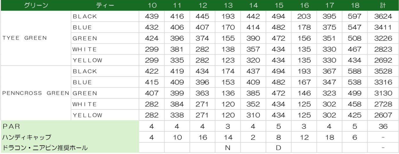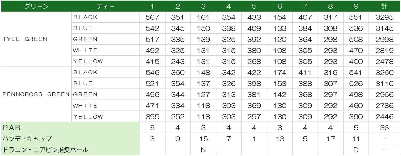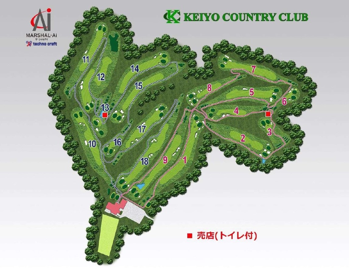 フェアウェイが広く、ティショットを思い切って打っていけるレイアウト。ホール間は豊富な樹木でセパレートされており、林を避けながら攻略していく必要があります。適度なアップダウンがあり、グリーンは砲台で小さいためセカンド以降はショットの正確性を要求します。初心者から上級者まで楽しめる、奥深い設計をお楽しみください。