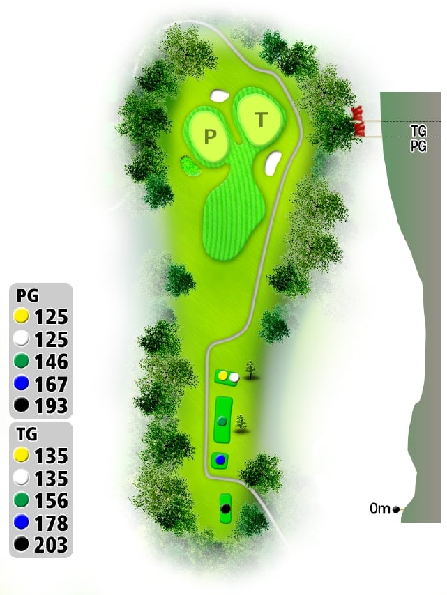 右にバンカー、左は傾斜しているためグリーンにしっかり落としたいホールです。